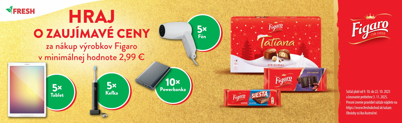 Zapojte sa do vzrušujúcej Figaro súťaže na freshobchod.sk a objavte jedinečné možnosti, ako získať skvelé ceny! Táto spotrebiteľská súťaž 2025 vám ponúka šancu na výhru, ktorú si nenechajte ujsť. Vytvorte si svoj vlastný príbeh úspechu, súťažte s ostatnými a užite si zábavu pri zapájaní sa do tejto jedinečnej akcie. Nezmeškajte túto skvelú príležitosť – súťažte a vyhrajte!