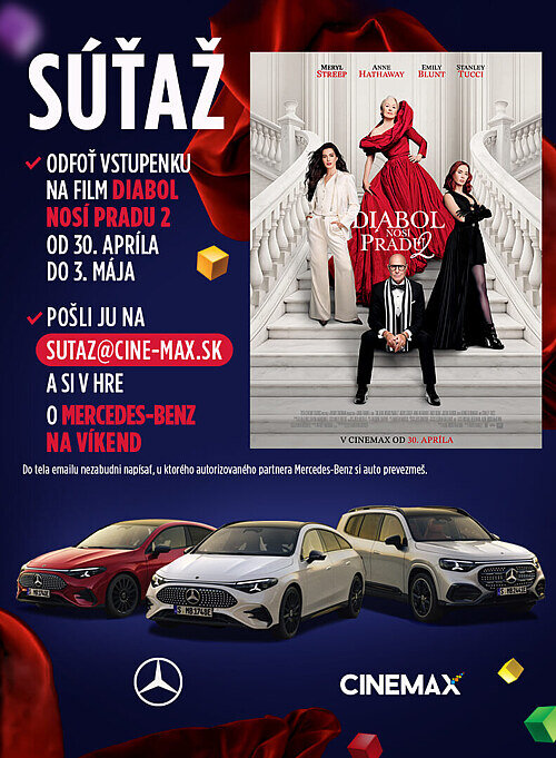 Zažite neopakovateľný víkend s novým modelom MERCEDES-BENZ! Na stránke cine-max.sk máte jedinečnú šancu zapojiť sa do súťaže a vyhrať tento luxusný automobil. Nezmeškajte aktuálne súťaže a staňte sa súčasťou vzrušujúceho online zážitku. Pre všetkých milovníkov internetových súťaží 2026 je to príležitosť, ktorú si nemôžete nechať ujsť. Vyhrajte a osviežte svoje víkendové plány!